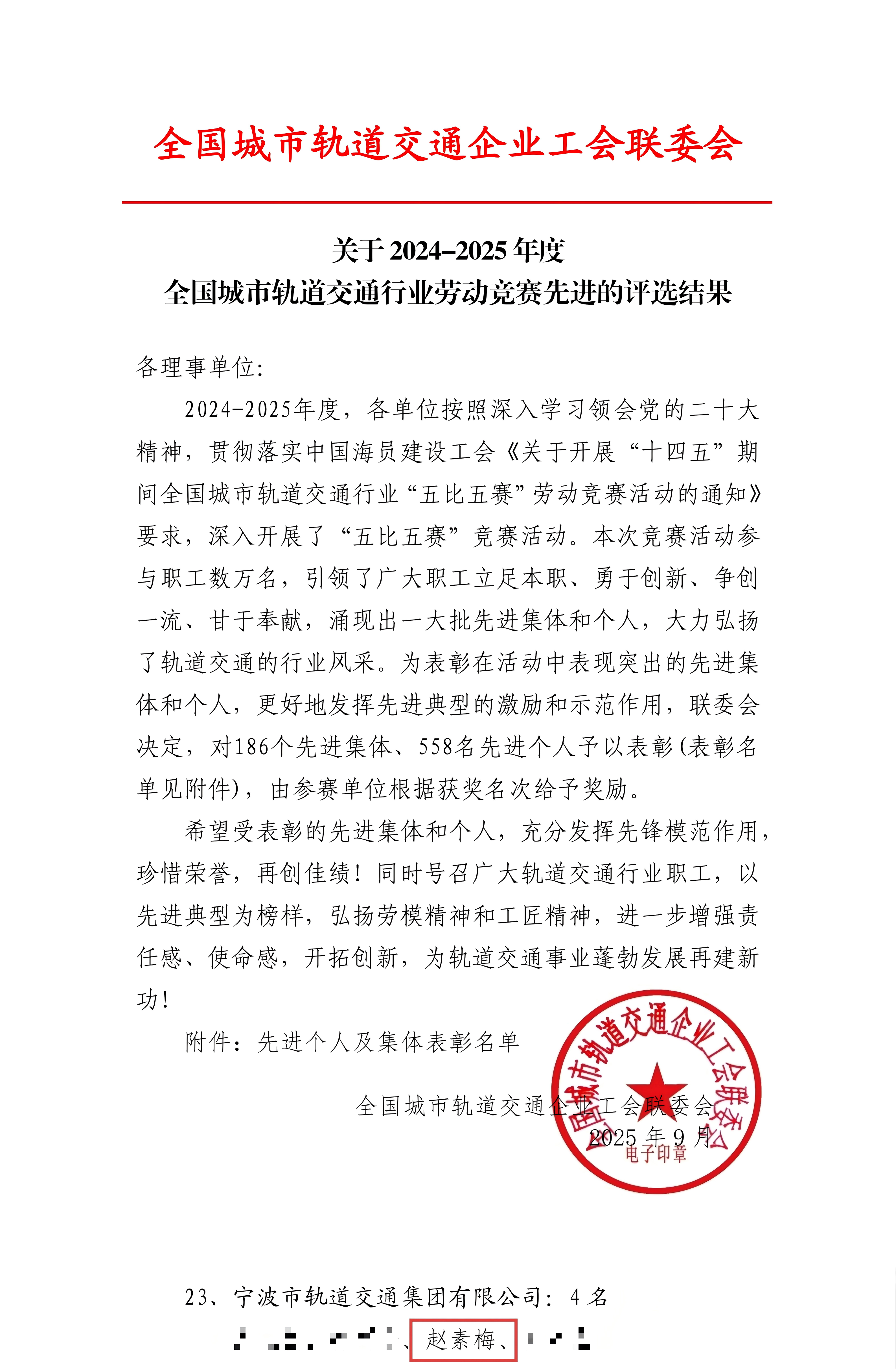 【喜讯】我校优秀校友赵素梅获全国城市轨道交通行业劳动竞赛“服务明星”