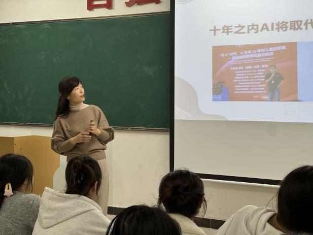 讲座伊始,任菊香通过一系列直观数据,客观分析了当前学前教育领域面临的机遇与挑战。她指出,在行业结构优化调整的背景下,社会对高素质、专业化的幼教人才需求日益迫切。她特别引用专家观点指出,“十年之内AI将取代所有职业,除了幼师之外”,这一论断迅速点燃了全场学生的兴趣与思考。