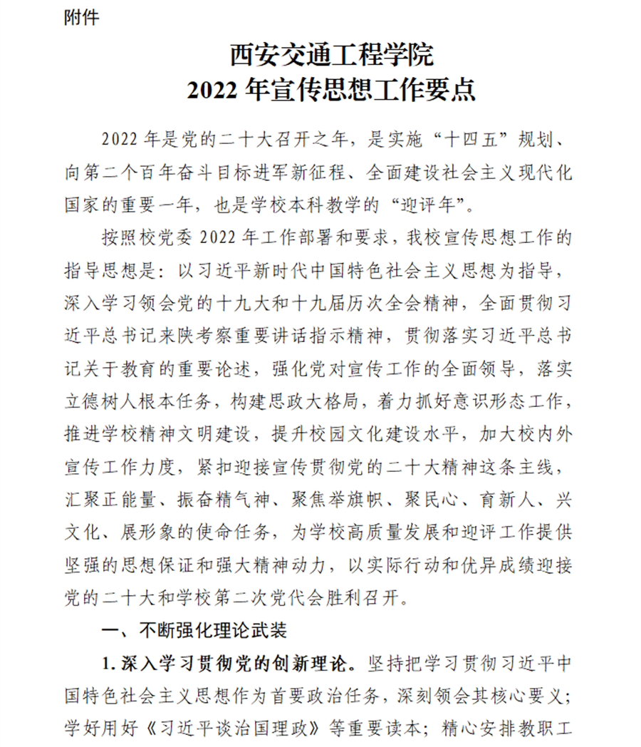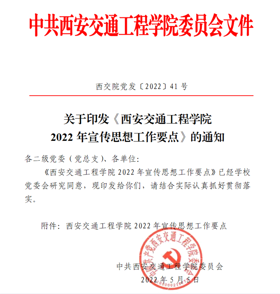 关于印发《西安交通工程学院 2022年宣传思想工作要点》的通知