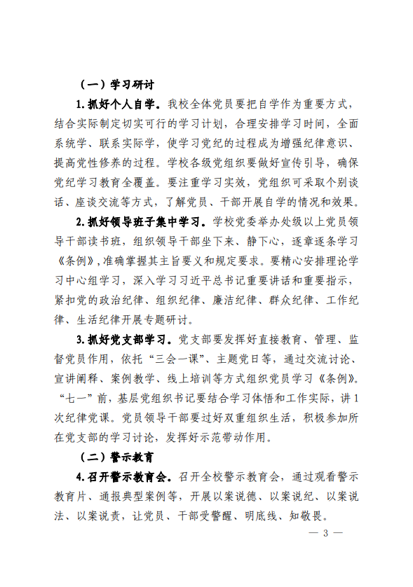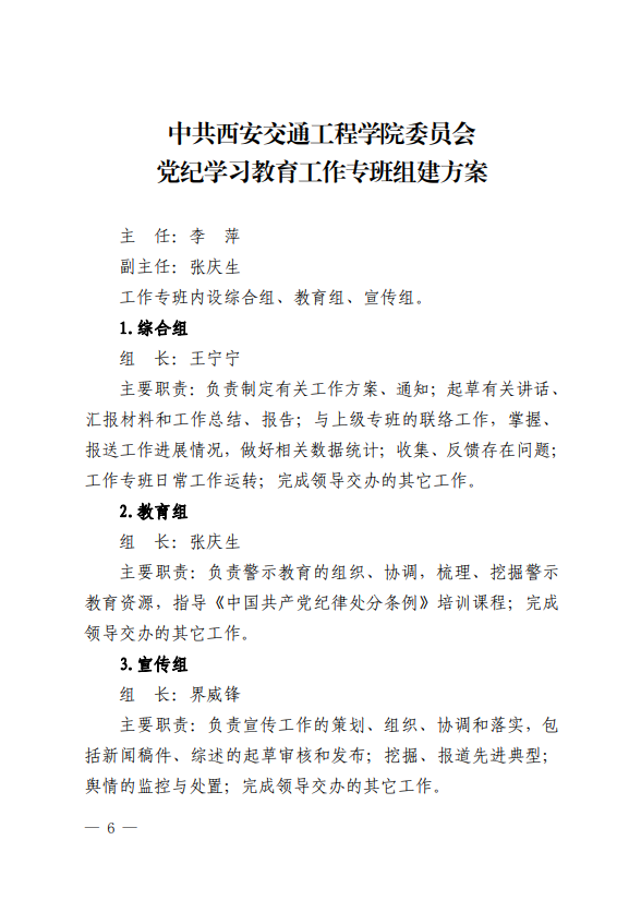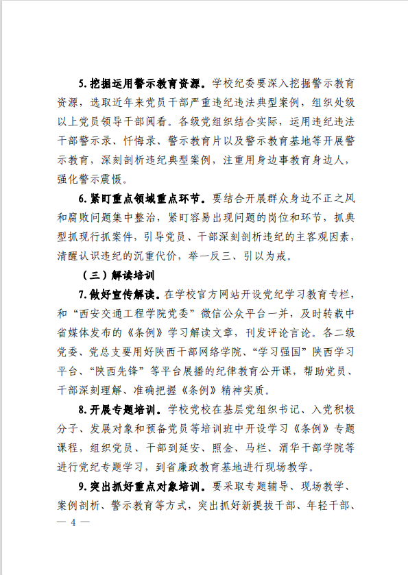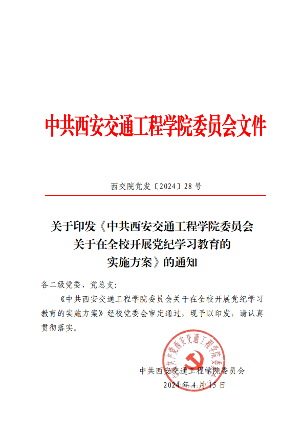 关于印发《中共西安交通工程学院委员会 关于在全校开展党纪学习教育的 实施方案》的通知