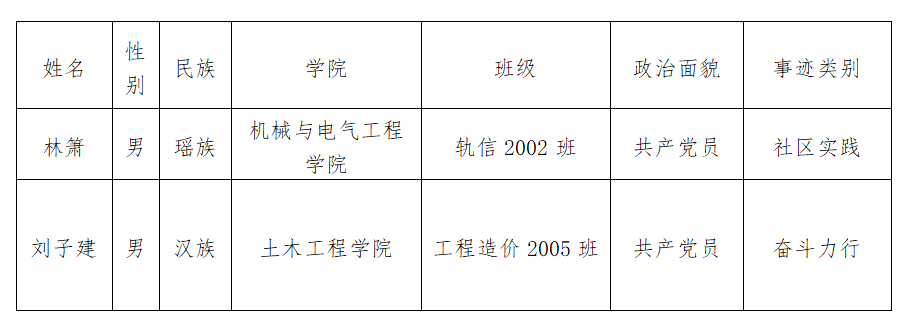 为深入贯彻落实习近平总书记关于青年工作的重要思想,动员引领广大团员青年为强国建设、民族复兴伟业挺膺担当,根据共青团陕西省委办公室《关于组织开展寻访2023-2024年度“陕西省大学生自强之星”活动的通知》文件精神,坚持公平、公正、公开的遴选原则,经个人申报、学院推荐、校团委联评,目前已完成我校2023-2024年度“陕西省大学生自强之星”推选工作,现将拟推荐名单公示如下: