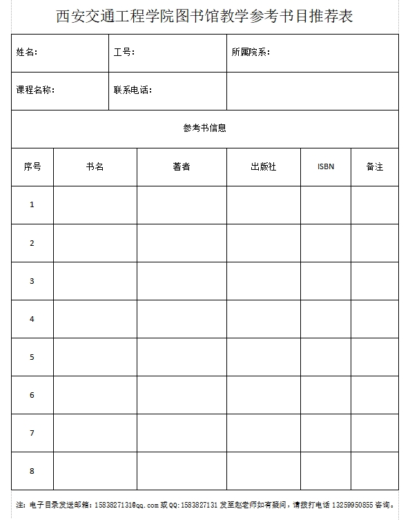附件:西安交通工程学院图书馆教学参考书目推荐表