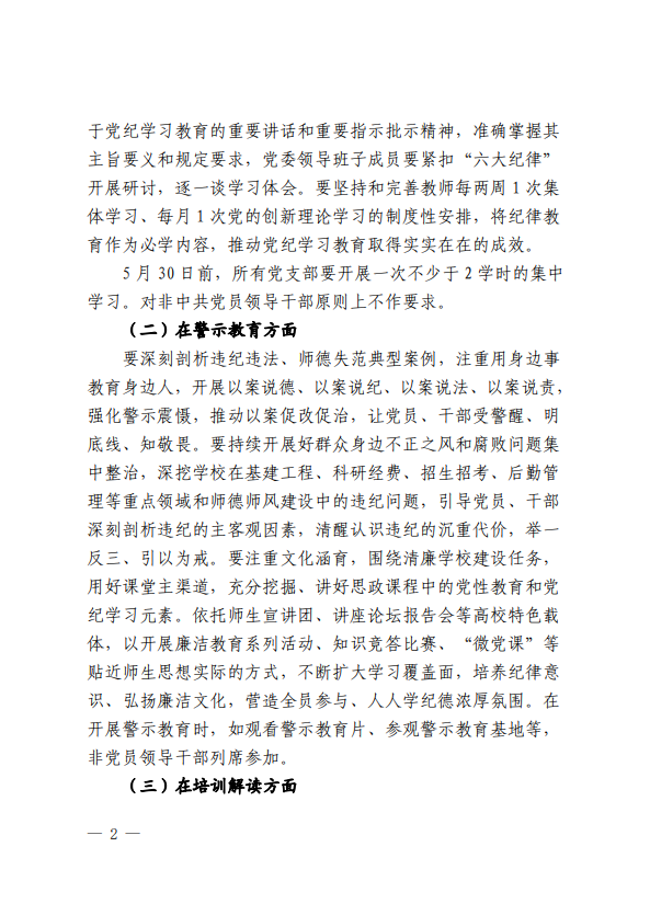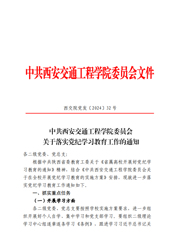 中共西安交通工程学院委员会关于落实党纪学习教育工作的通知