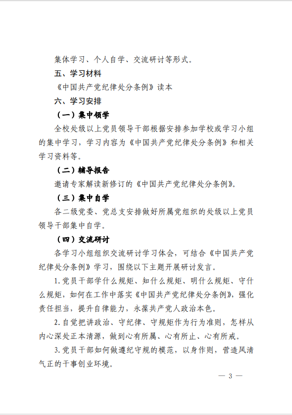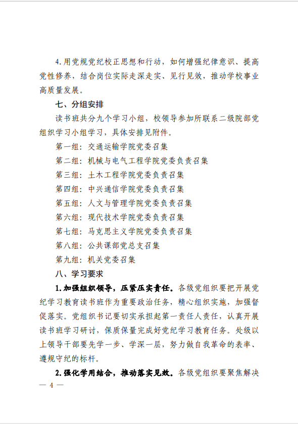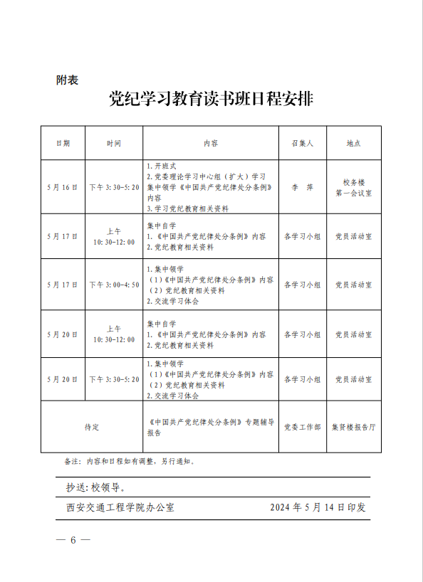 中共西安交通工程学院委员会关于印发《党纪学习教育读书班实施方案》的通知