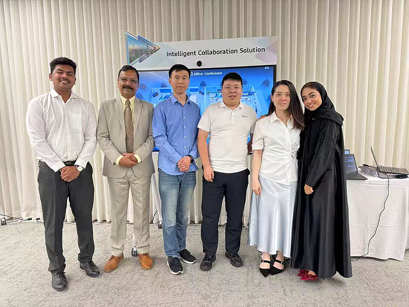 同时,段磊还带领团队多次支撑区域重大对外展会。特别是在全球顶级科技展会Gitex中,展馆外热浪滚滚,温度突破40℃,没有空调的工作区如同蒸笼,汗水浸透工装,金属设备烫得几乎无法触碰。他争分夺秒,在灼热的空气中精准地完成设备调试,打通骨干网络,提前完成任务,保障了公司形象与客户体验。他也凭借出色表现,荣膺2024年“中东中亚地区部优秀员工”。