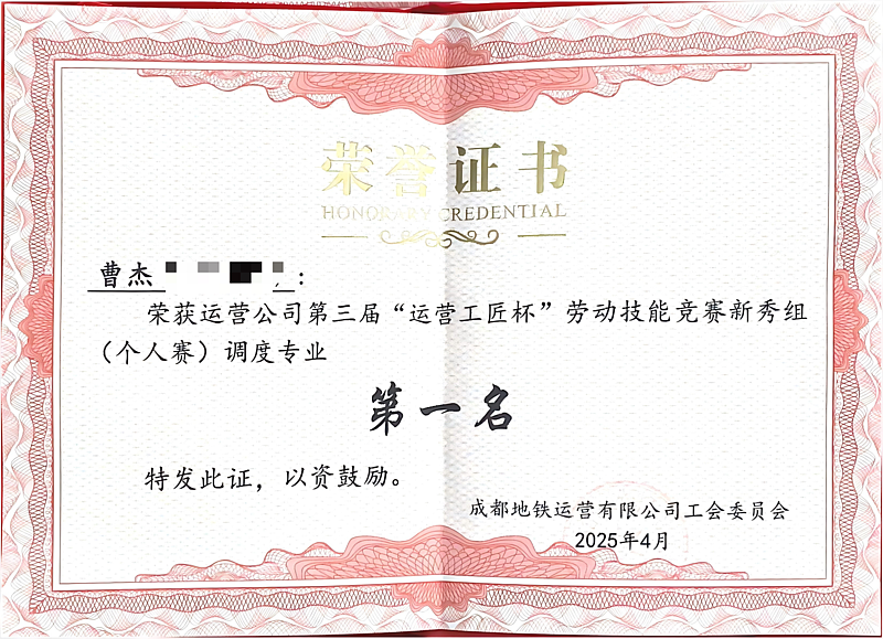 2023年10月,曹杰刚坐到调度台,面对密如蛛网的ATS界面,竟像回到2018年第一次摸地铁操纵杆那天,心里有点儿发怵。但母校教给他的不只是本事,更是那股“钻到底”的劲头。他没慌,反而把电车司机时期记录的18个典型案例翻出来,一条条写成调度处置预案,塞进模拟机里反复练,直到手指先于大脑做出反应。2024年参加“运营工匠杯”竞赛,线网指挥中心的强手如云,他却一举拿下新秀组第一。