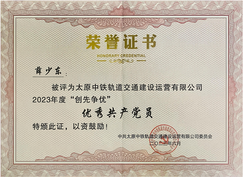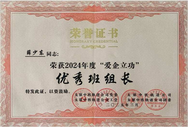七年深耕,硕果累累。在薛少东的带领下,他所管理的车站先后荣获集团公司标兵班组、中国中铁安全质量监督岗、太原市青年安全生产示范岗等多项荣誉,并连续4年被评为公司优秀班组;他个人也凭借突出的工作业绩,连续4年获评优秀班组长。但对薛少东而言,这些荣誉只是“笨功夫”的副产品。