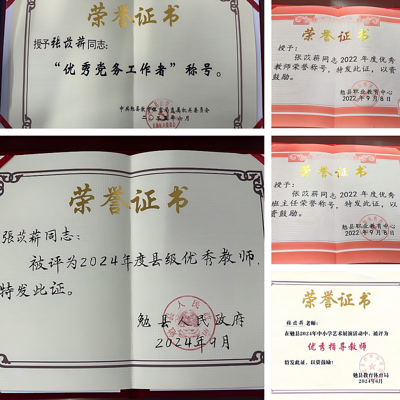 多重角色的历练,让她收获了勉县优秀教师、勉县优秀党务工作者、优秀班主任等多项荣誉,成为同事眼中的榜样、领导信赖的骨干。