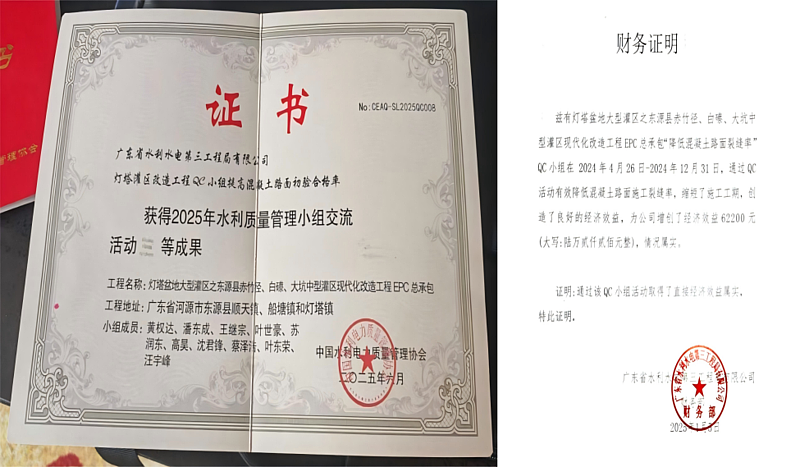 真正的考验接踵而至。2024年4月,他参与到灌区改造工程项目的QC小组活动中。项目点多面广,部分施工现场地处偏远,甚至通讯信号都时有时无,给QC工作的协调推进带来了巨大困难,效率一度低下。面对挑战,苏润东与同事们没有退缩。他们迎难而上,细化工作方案,倒排工作计划,并运用“头脑风暴法”,从人员、机械、环境、材料、方法、测量六个维度进行深入剖析和论证。通过QC小组的持续攻关,他们成功找到了控制混凝土路面裂缝的有效方法,显著降低了返工率。最终,该项目不仅工程质量得到提升,施工工期更是比原计划缩短了6天,为公司创造了显著的经济效益。其参与的QC成果,更在2025年6月荣获全国三等奖,这是对他与团队专业技术能力和创新精神的最佳褒奖。