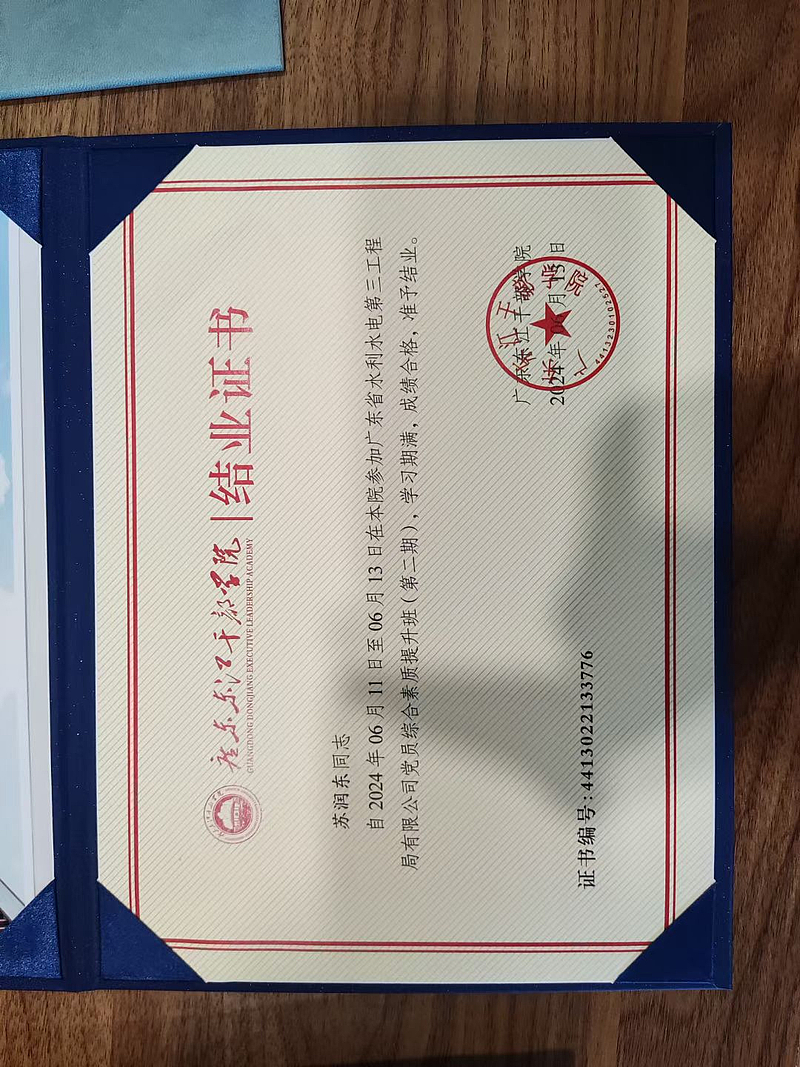 短短两年,从水利工程到市政机电,苏润东以强大的学习适应能力和攻坚克难的韧性,迅速成长为能够跨越专业领域、处理复杂问题的复合型人才。同年,他在广东东江干部学院党员综合素质提升班顺利结业,彰显了其作为一名青年党员持续提升自我、追求进步的自觉。